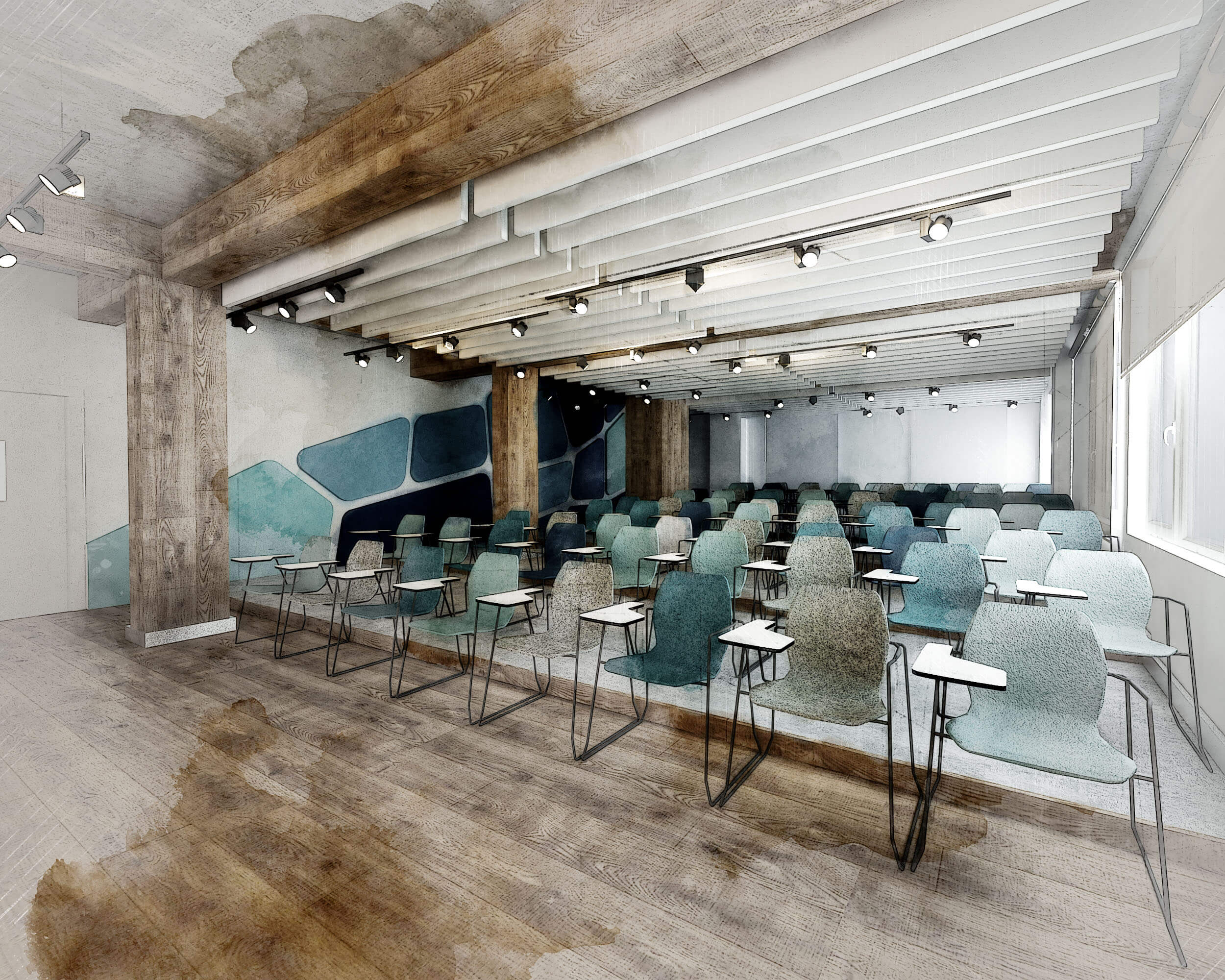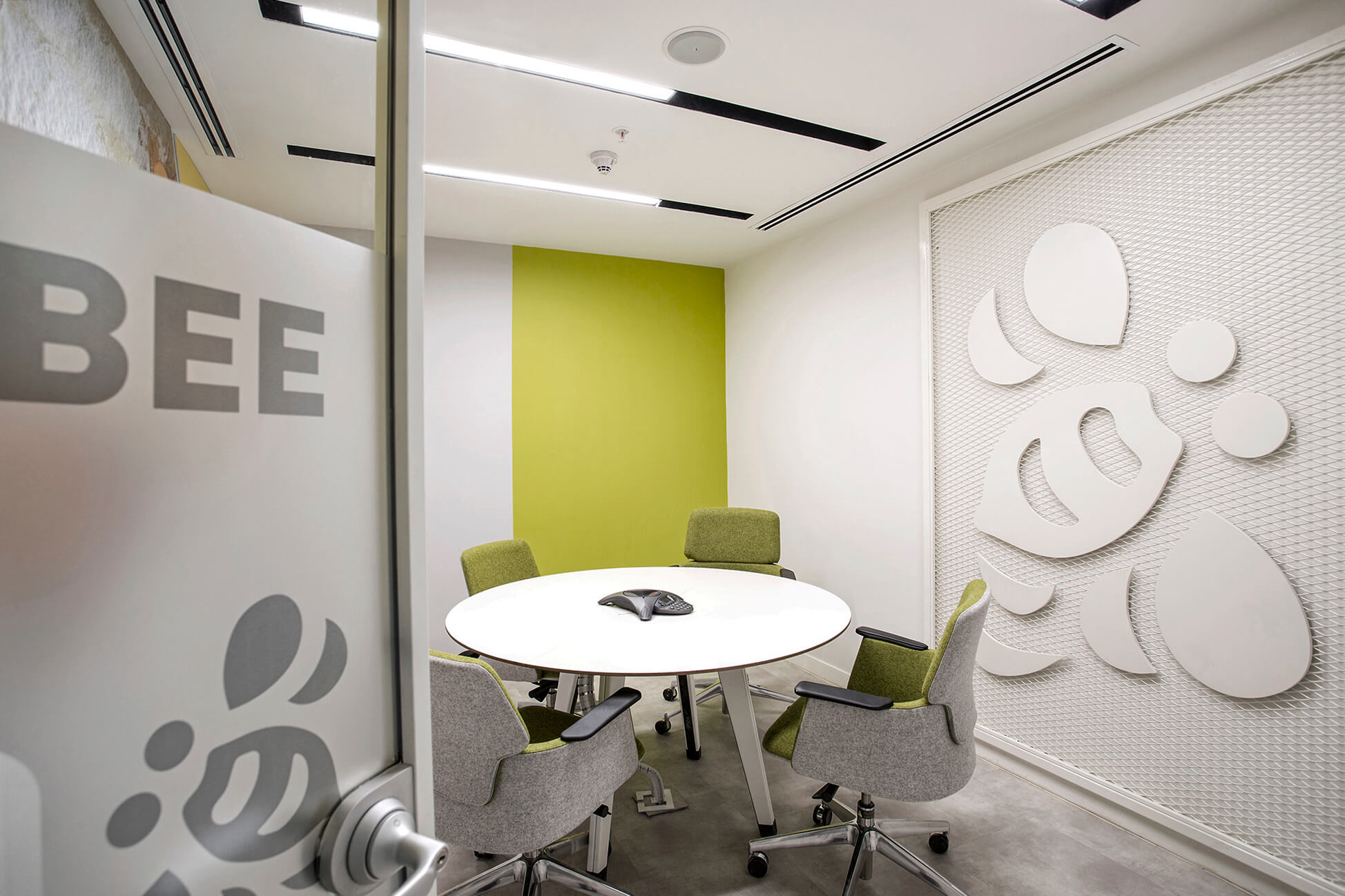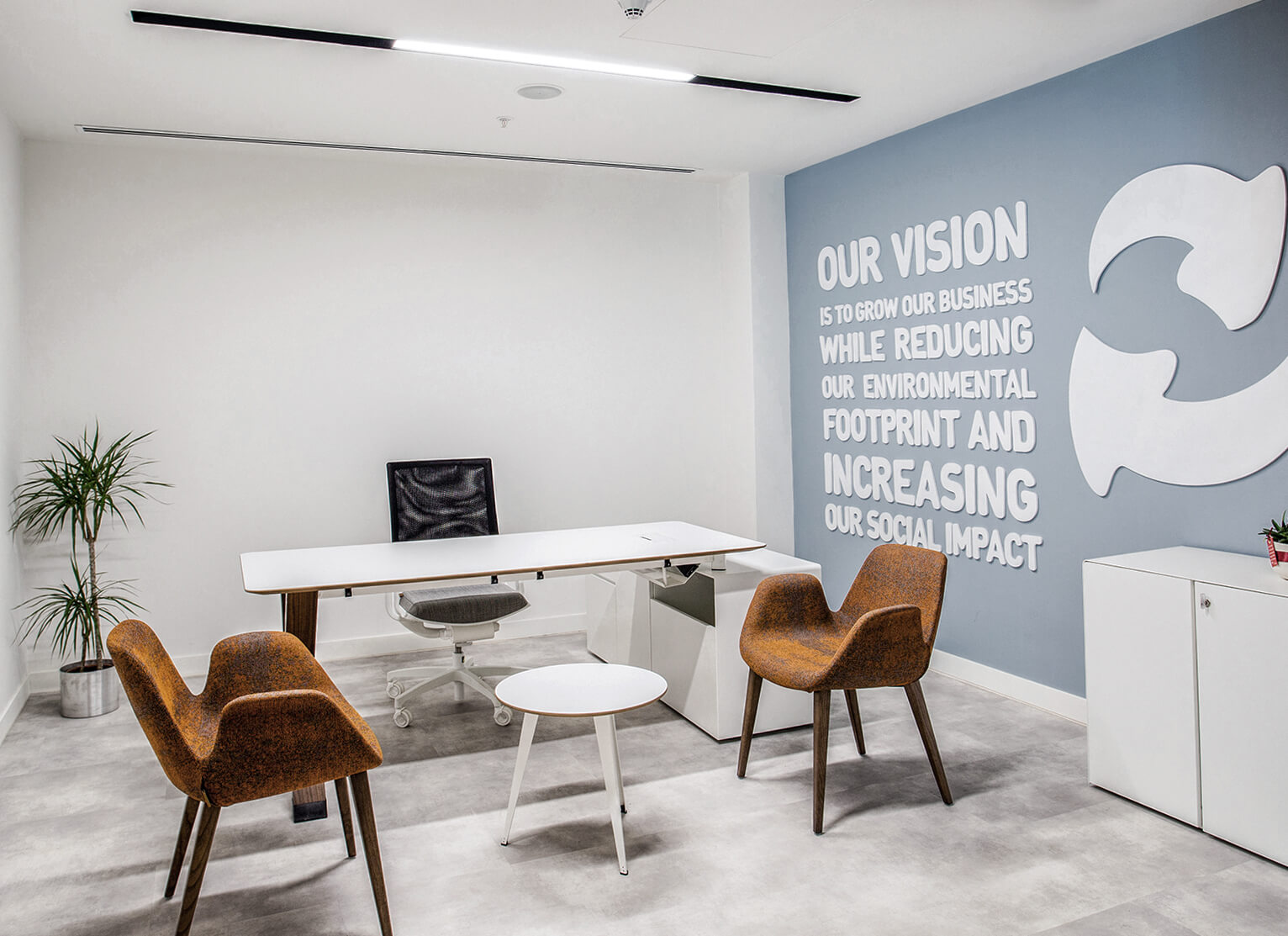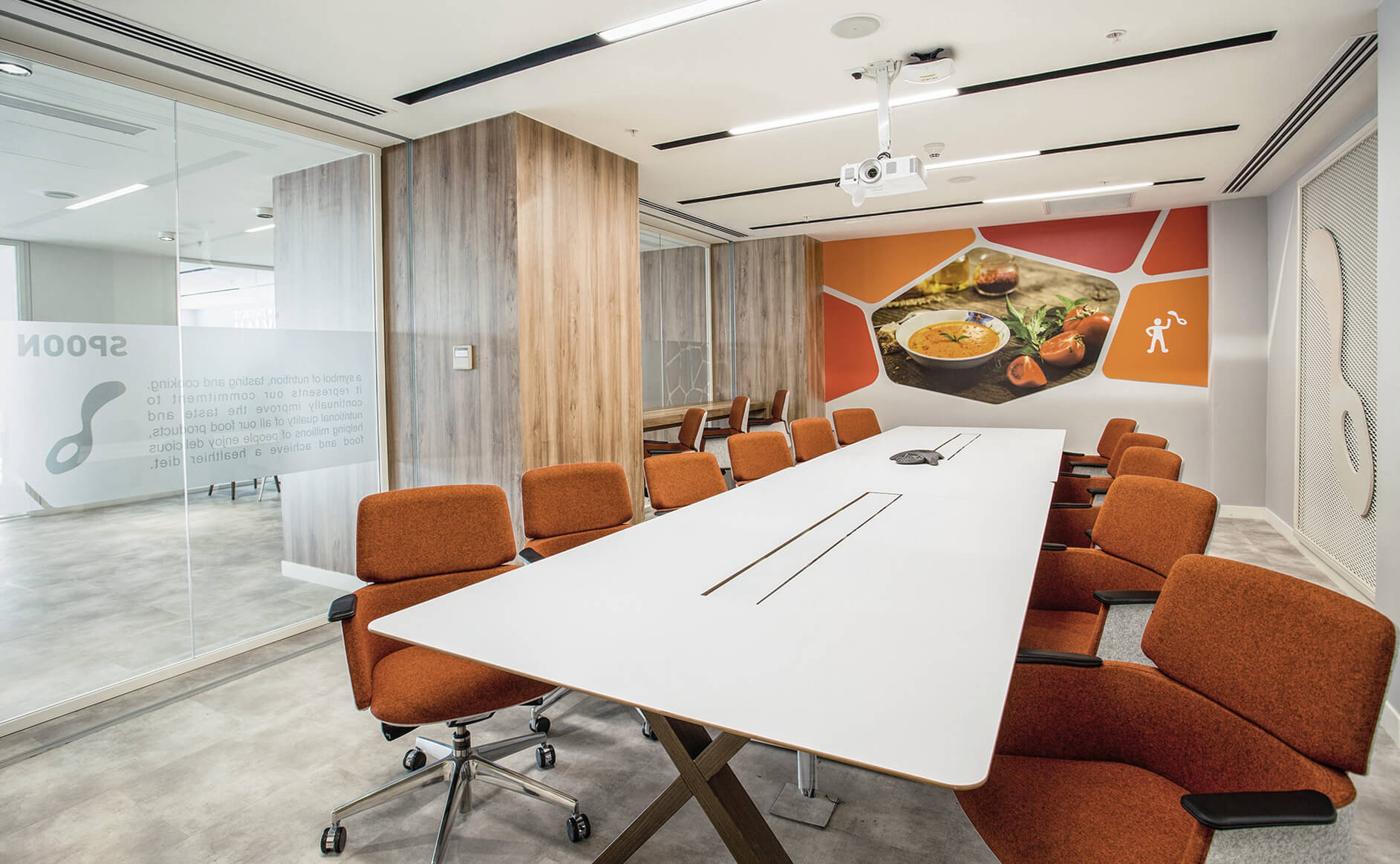 Inside, a balanced approach combines clean, neutral tones with vibrant furniture to soften the laboratory-like atmosphere. Hygienic and well-lit environments are emphasized in production and lab-related areas, while wood finishes and greenery introduce warmth and comfort. Meeting rooms, inspired by icons from the Unilever logo, each feature distinct color themes—bringing energy, variety, and a strong sense of brand expression to the workspace.