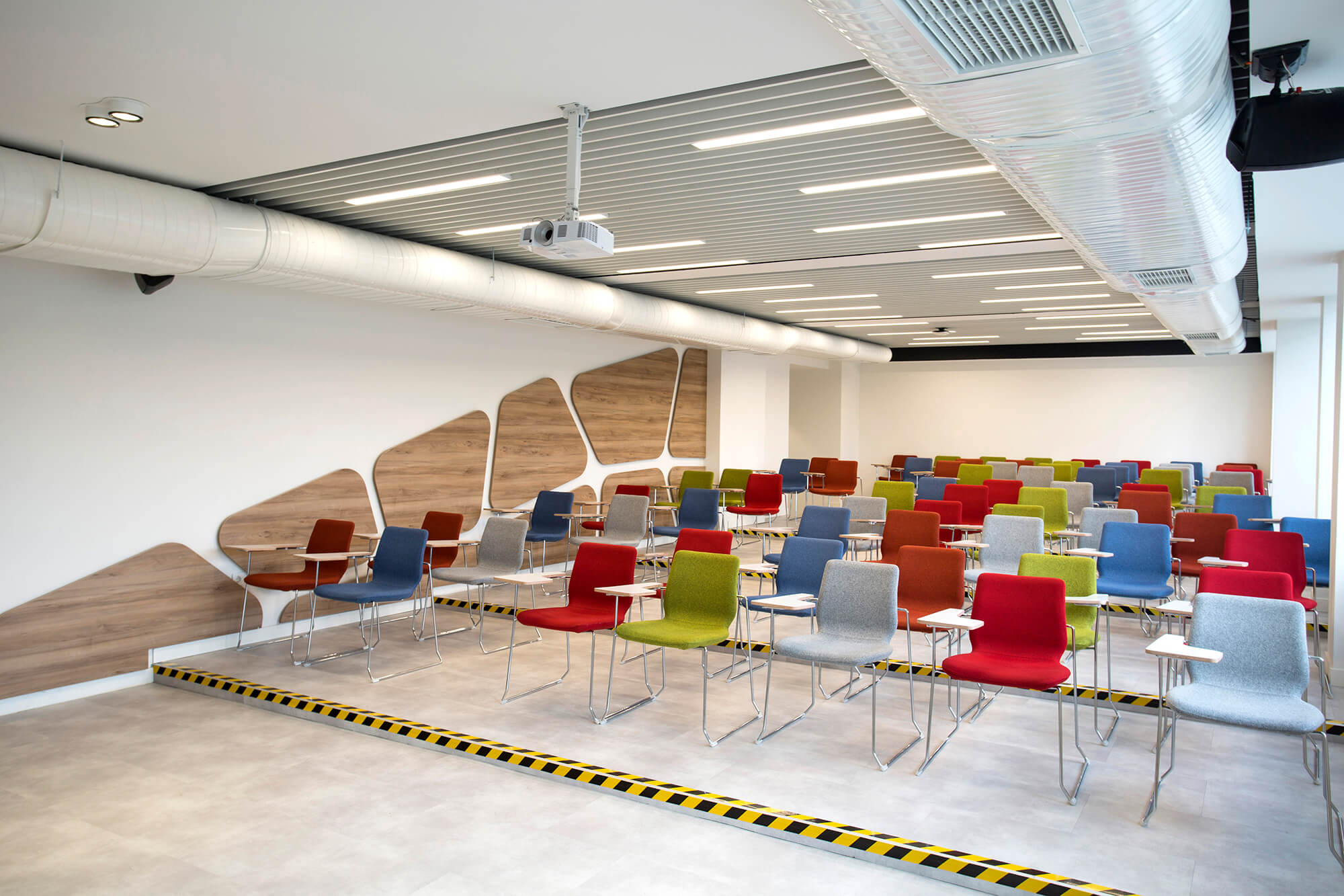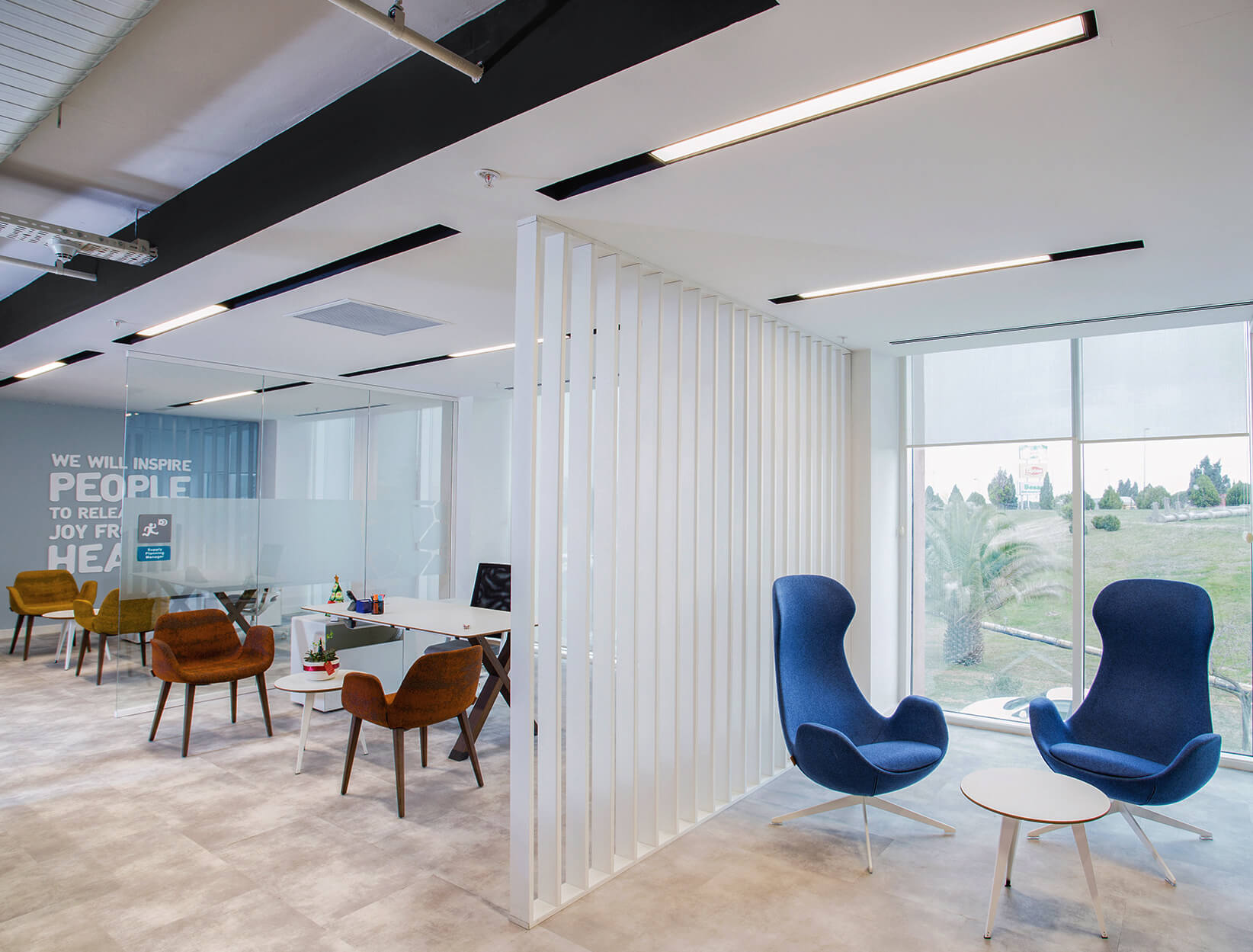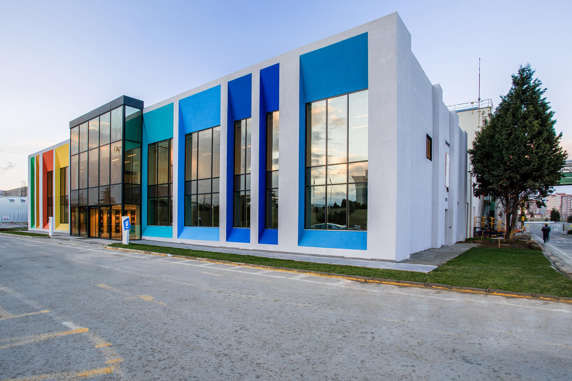 The Unilever Besan Istanbul Office, located in Tuzla, reflects the brand’s strong identity from façade to interior. The façade design draws directly from Unilever’s color palette, creating a bold yet economical solution through the use of Boardex panels, plaster, and paint.